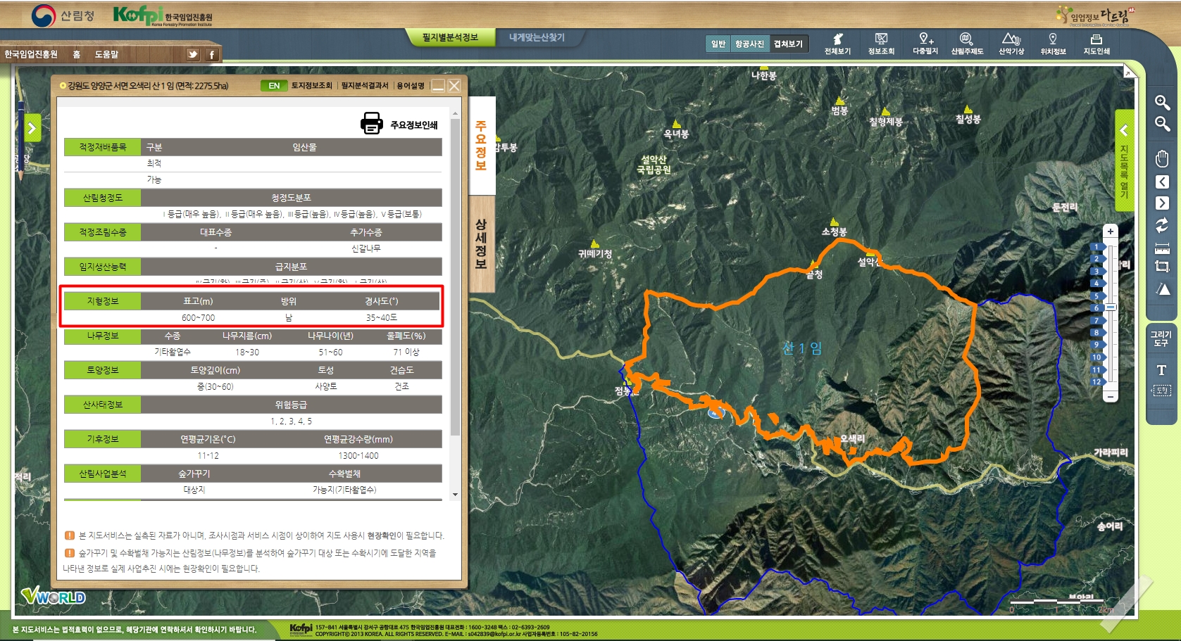 또하나 기억하고 계셔야 하는 것중에 하나가 바로 임업정보다드림사이트에 나와있는 경사도는 법적효력이 없다는 것입니다.