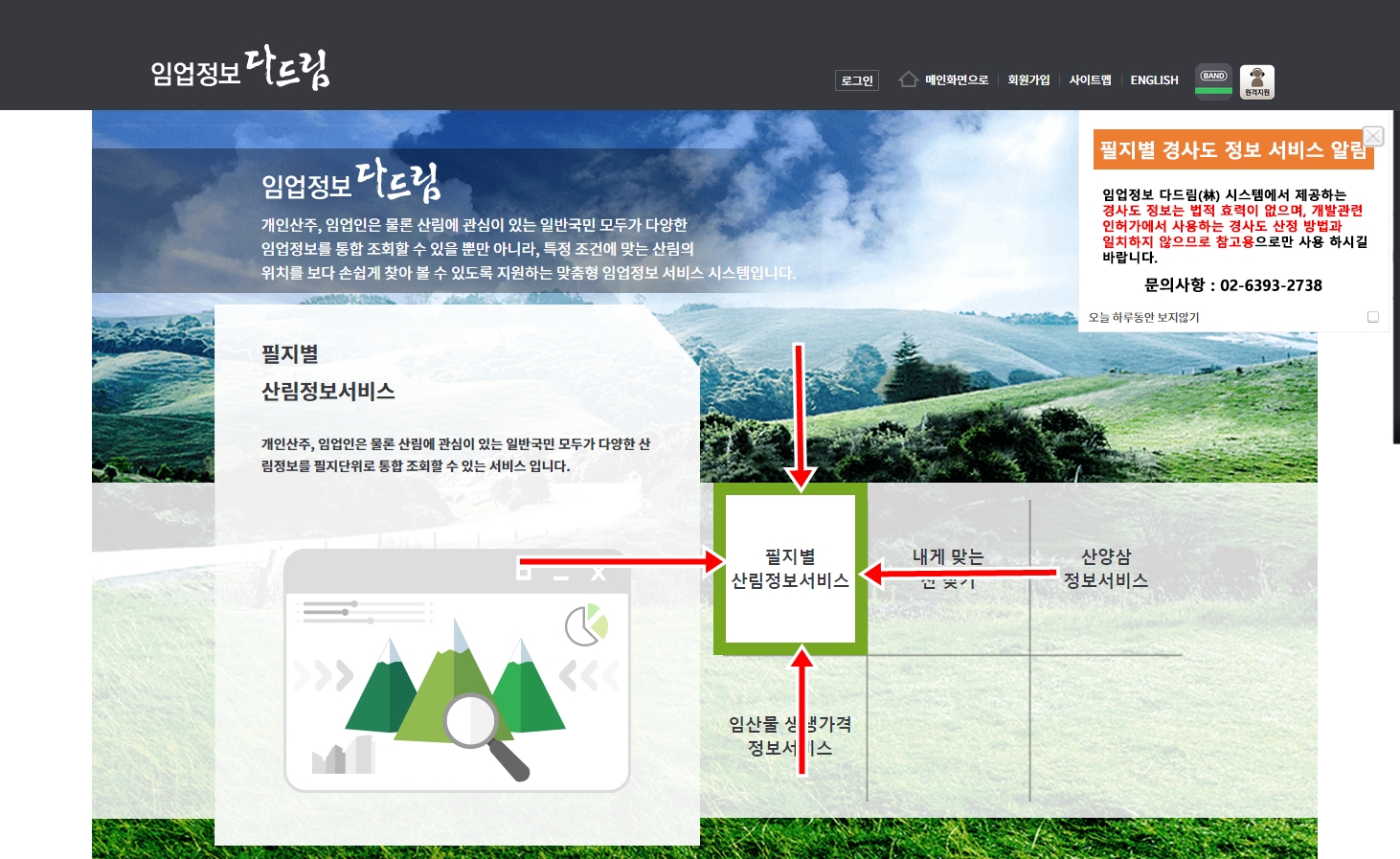 산림정보서비스를 클릭하고 들어가면 위와 같은 화면이 나옵니다.