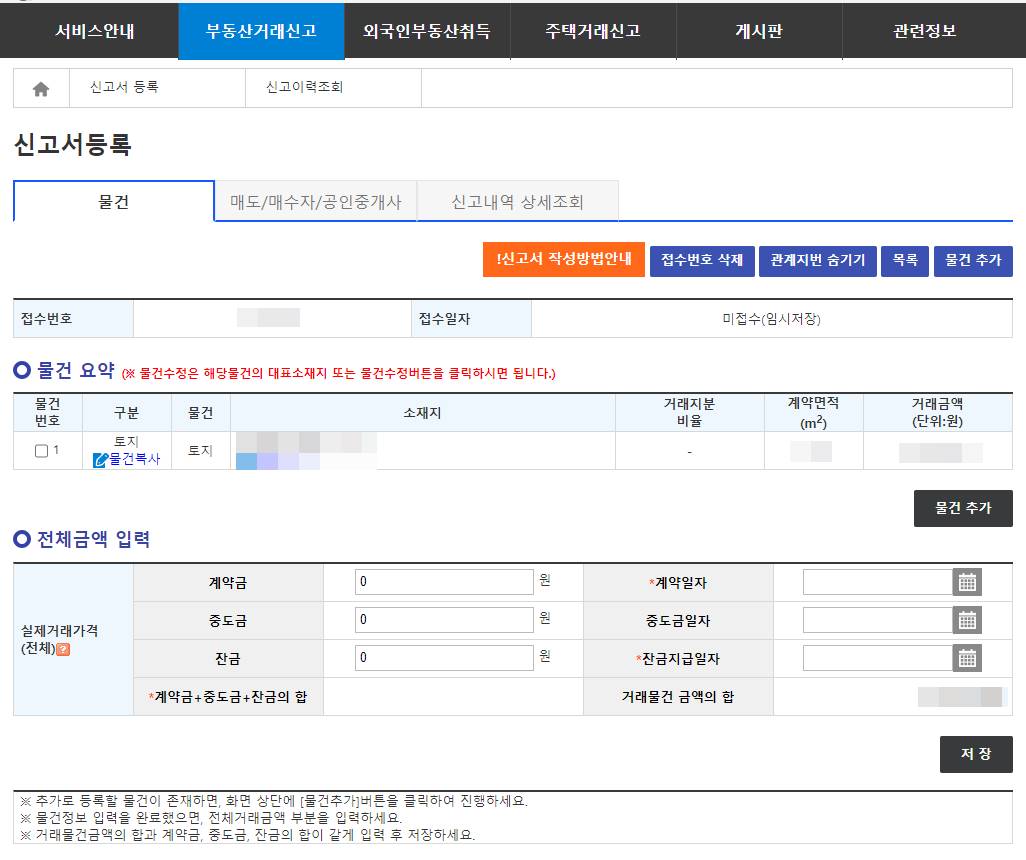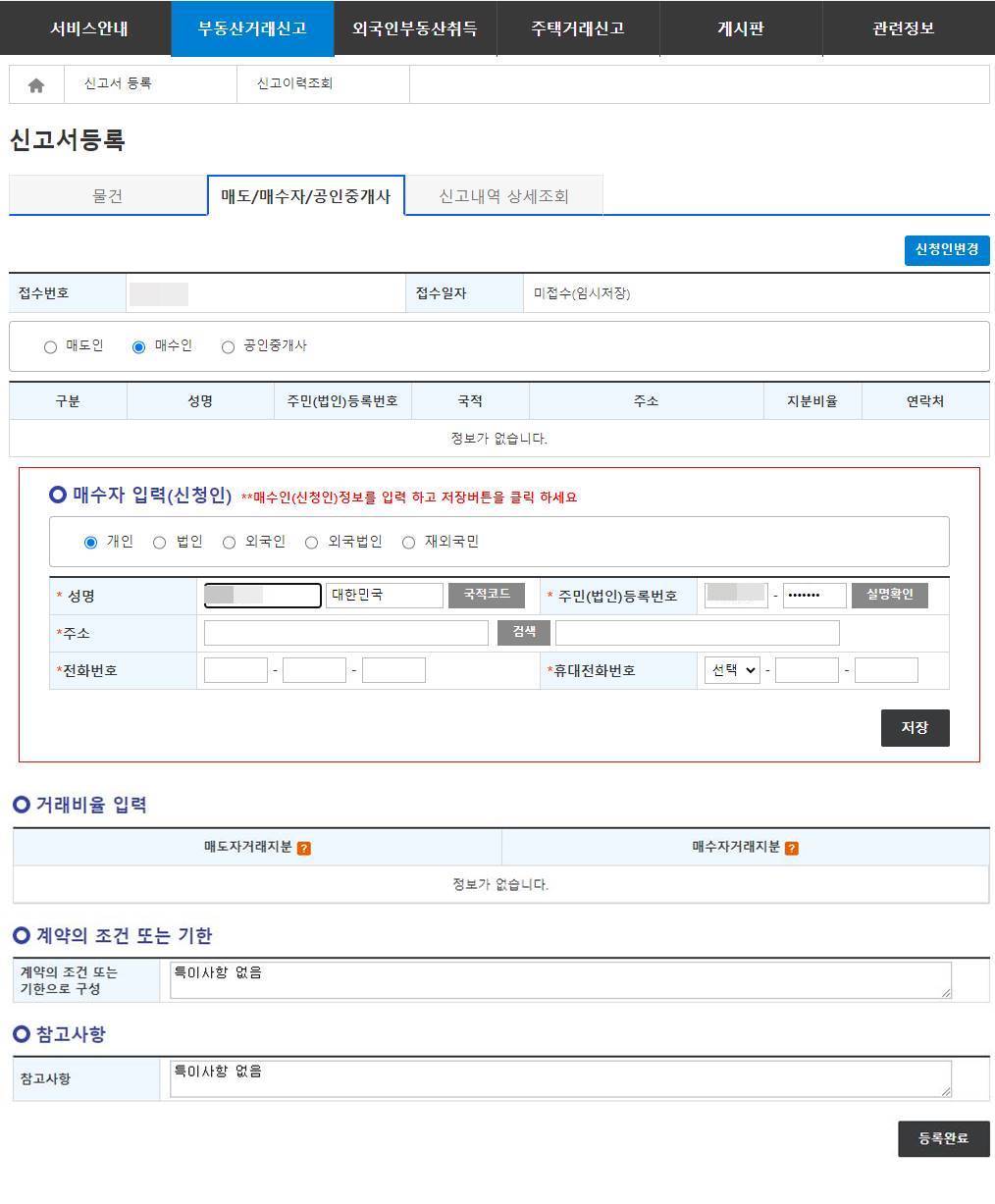 부동산거래신고가 끝나야 소유권이전등기 신청을 할수 있기 때문에 정확하게 기재를 해야 합니다.