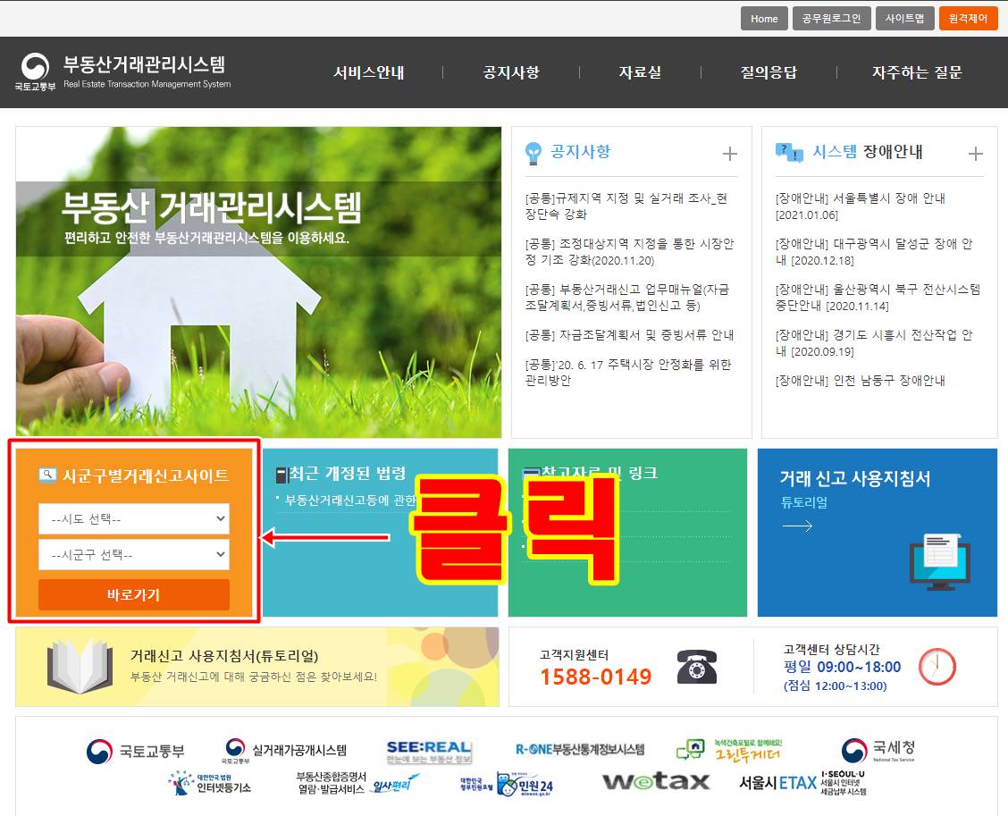 부동산 실거래를 셀프로 온라인으로 하기위해서는 "국토부 부동산거래관리시스템"에 접속하여야 합니다.