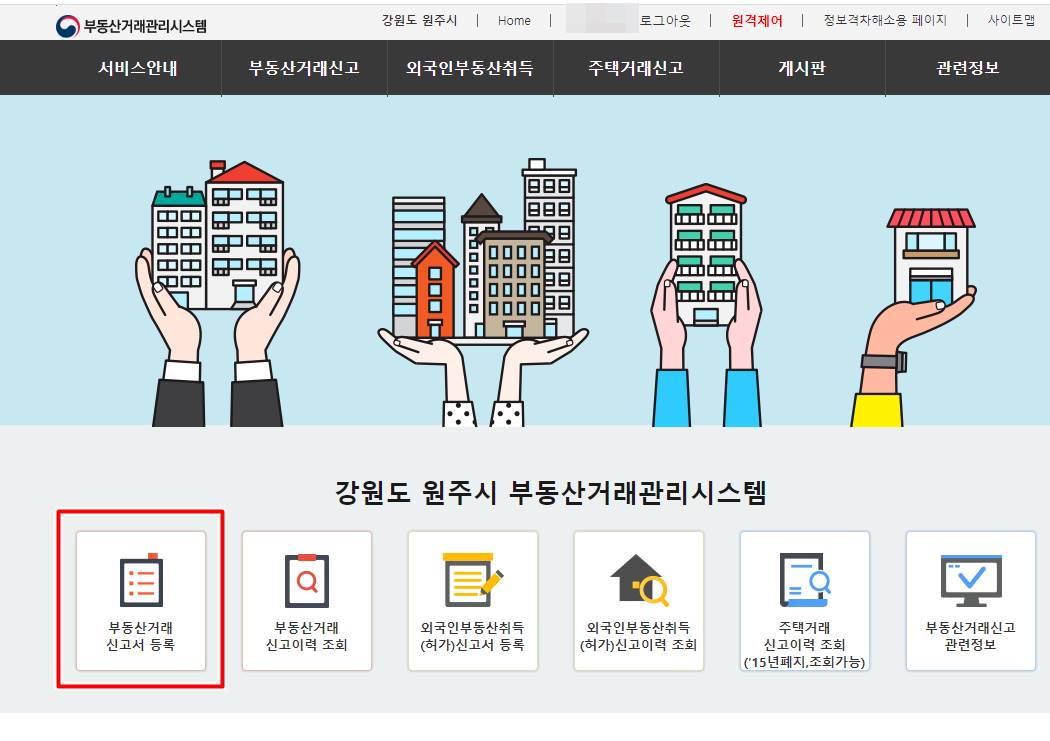 그후 부동산거래 신고서 등록을 클릭하시면 됩니다.