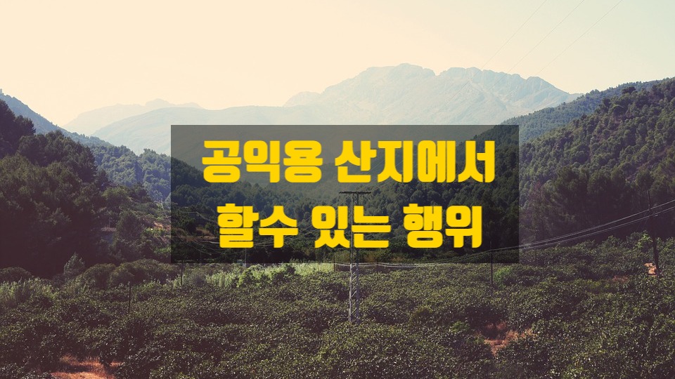 이번 시간에는 먼저 공익용 산지에서 할 수 있는 행위에 대하여 한번 알아보도록 하겠습니다.